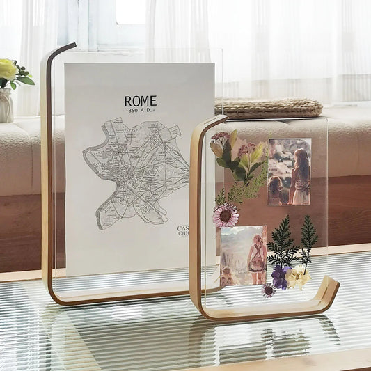Wooden Picture Frame Swing Table DIY Transparent Herbarium Display Frame Acrylic Double Sided Personalized Photo Box Home Decor