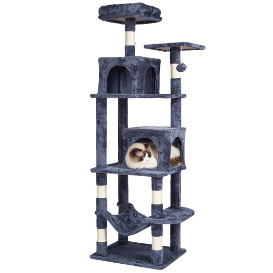 Large Cat Tree Tower for Indoor Cats With Sisal-Covered Scratching Posts Spacious Hammock Padded Perches and Condos Dark Grey
