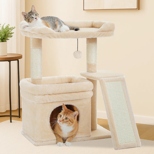 27-Inch Cat Tree Cat Tower: Cozy Widened Top Perch, Sisal Scratching Post & Pad (Fulfills Scratching Needs), and Snug Cat Condo