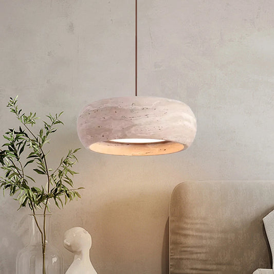 Wabi-Sabi Japanese Style Yellow Travertine Ring Chandeliers, Natural Cave Stone Circle Pendant Light Livingroom Home Decor