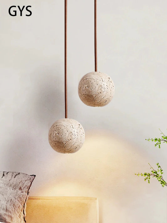 Retro Natural Stone Art Pendant Light Yellow Travertine LED Chandelier Bedroom Bedside Decoration Home Lighting Fixtures