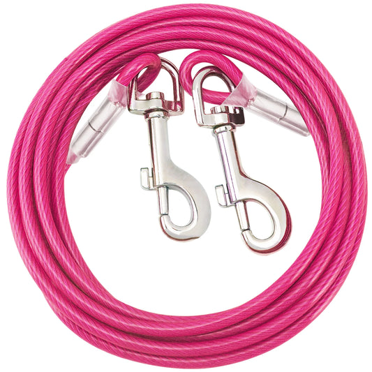 Dog Tie Out Cable Leash, Double Durable Steel, Welded Clamp, Lead, Small, Medium, Large Dogs, Outdoor Leash Belt