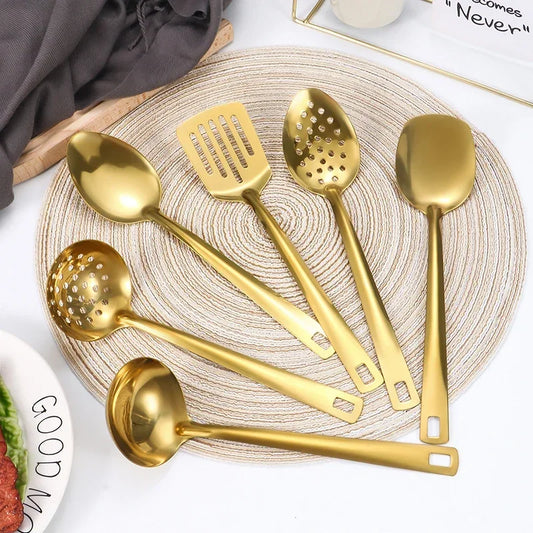 6pcs Korean-style Hot Pot Cutlery Set Stainless Steel Dinnerware Set Home Creative Korean Cutlery Golden spoons Kitchenware Set