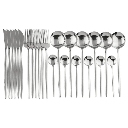 24Pcs Luxury Mirror Flatware Set Kitchen Stainless Steel Tableware Set Hotel Dinnerware Set Western Silver Cutlery Set Gift