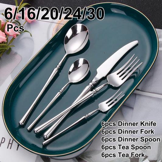 20/30/40Pcs Dinnerware Set Stainless Steel Knife Fork Spoon Cutlery Tableware Set Kitchen Flatware Dinner Silverware Table Set