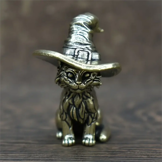 1pc Vintage Brass Witch Cat Statue, Solid Miniature Cat Sculpture, Decorative Animal Figurine, Antique Copper Tea Pet, Collectib