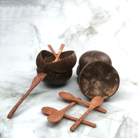Pure natural coconut wooden bowl spoon kitchenware exquisite craftsmanship rice dessert bowl salad noodle bowl mousse pasta