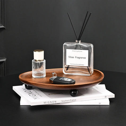 Elegant Wooden Tray Convenient Pedestal Stand Plate Multifunctional Key Jewelry Home Storage Food Dessert Display Trays Decor