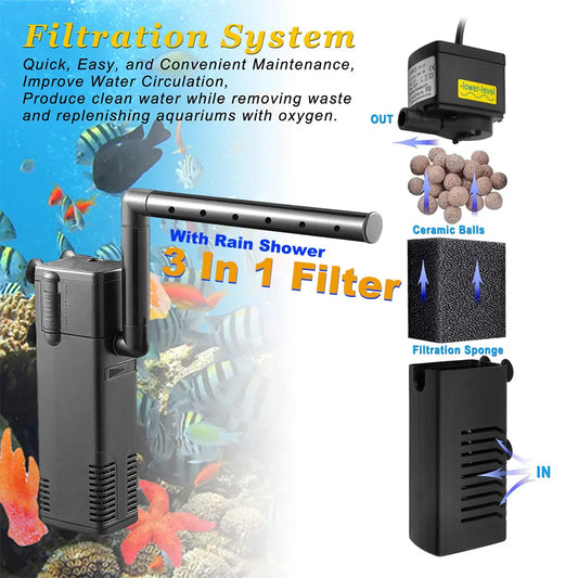 Built-in Aquarium Filter Rain Shower Type Outlet Low Water Level Circulating Water Purify Oxygenation Filter Submersible Pump