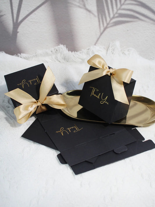 Eid al Adha Gift Box with Golden Ribbon, featuring crescent and star patterns, perfect for gifting to friends and family