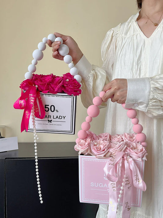 1pcs Art Cardboard Embossed Letter Bubble Folding Handheld Flower Box Party Supplies Portable Flower Arrangement Box Gift Box