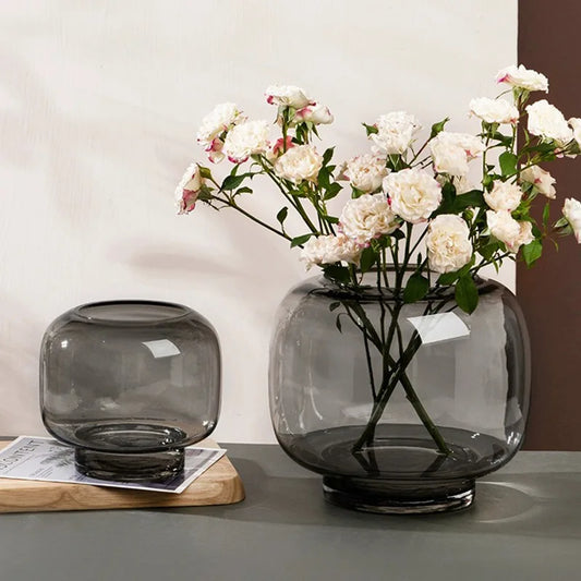 Ins Style Circular Large Belly Glass Vase Simple and Creative Hydroponic Flower Container Living Room Flower