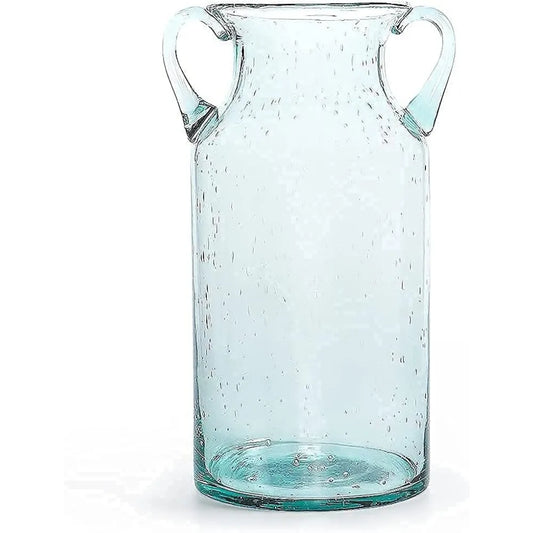 decorative glass vase 11" tall, bubble air flower vase with handles, handblown jug vase for dining room, bedroom, bathroom, man