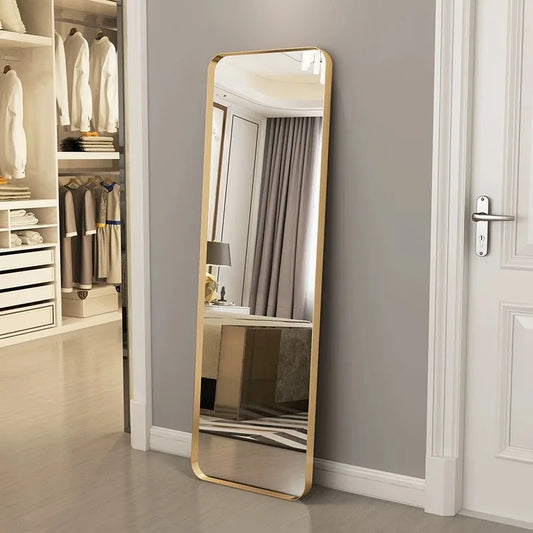 Gold Full Length Arched Mirror Stand Leaning Aluminum Frame Hanging Floor Mirror