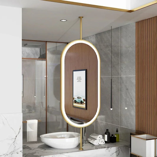 Design Gold Mirror Bathroom Metal Frame Wall Mount Mirror Oval Creative Led Espejos Decorativos Home Decoration Accessories