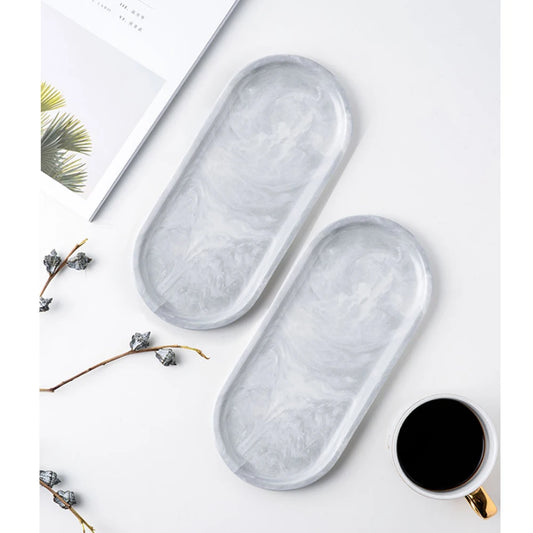 Nordic Style Gold-Plated Oval Plate Creative Ceramic Plate Marbled Western Dish Snack Plate Cake Storage Tray Jewelry Decoration