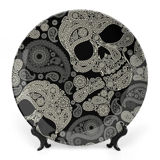 Black and White Skulls Ceramic Bone China Decorative Plate with Stand Home Wobble-Plate Dessert Plates Household Plate Gift