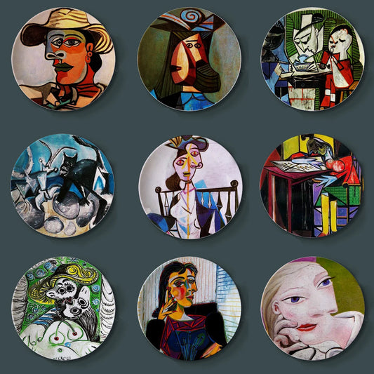 Spanish Picasso Painting Plates for Home Wall Decor Abstract Watercolor Desk Display Ceramic Craft Round Colorful Plate