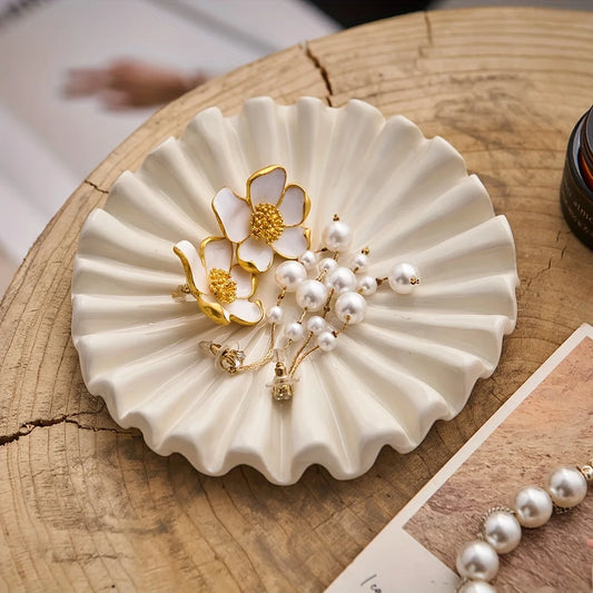 French Retro Relief Tulip Ceramic Jewelry Tray Exquisite High-value Jewelry Plate Light Luxury Dessert Plate Photo Display Dish