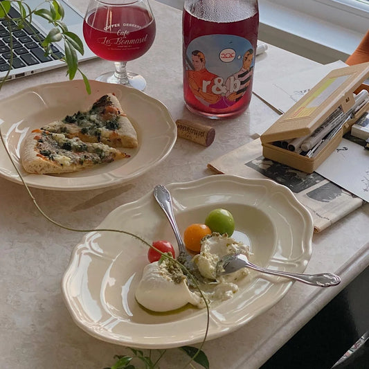 French Cream Ceramic Western Plate Oval Retro Dessert Cake High Appearance Horizontal Breakfast Plate