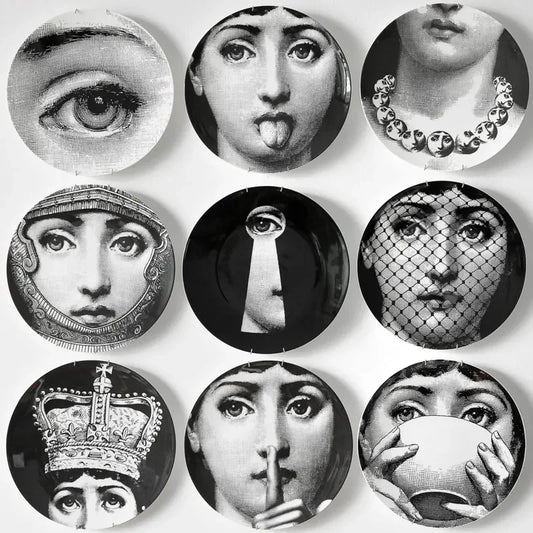 Fashion Lady Face Milan Style Art Ceramic Wall Hanging Plates Living Room Bar Banquet Hotel Studio Hall Decorations Wedding Gift