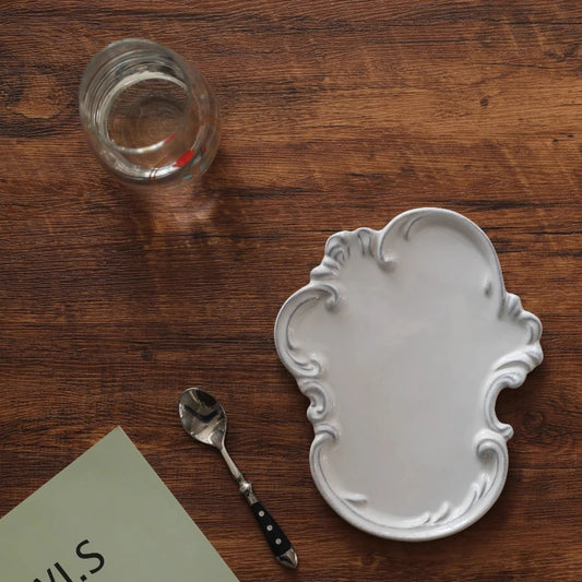 Vintage lace handmade ceramic tray, dining plate, creative bathroom, bedroom jewelry, aromatherapy tray, jewelry dish