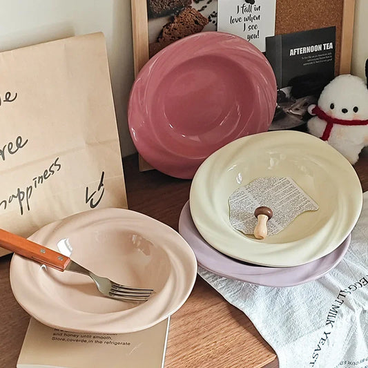 Cream Luxury Plate Bone Dish Household Food Grade Ceramic Snack Cake Plate Plate Dining Table Storage Plate Decoration Ins