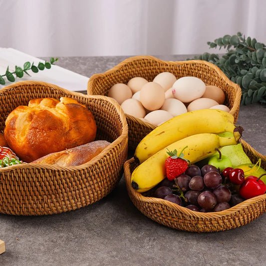 Decorative Imitation Rattan Baskets Bread Fruit Wicker Serving Tray Handwoven Plate Tray French Fries Boats Storage Bowls Platte