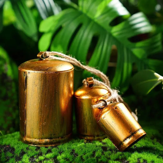 Rustic Christmas Decor: Large Cow Bells for Decoration - Vintage Gold Bells on Rope (Set of 3)