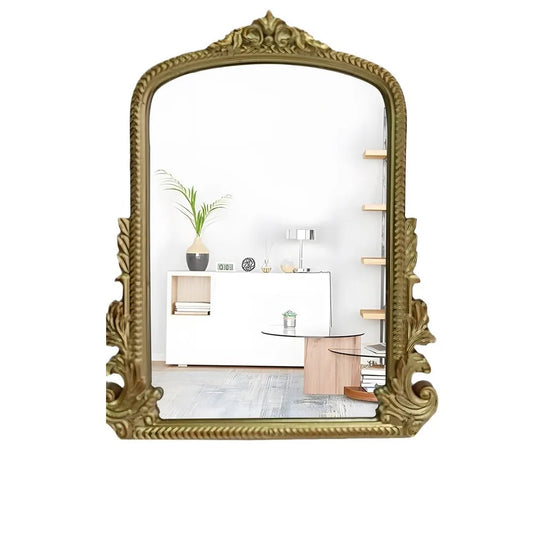 Vintage Vanity Makeup Desk Mirror Antique Traditional Chic Arch Table Standing Mirror Gold Decor Wood Framed