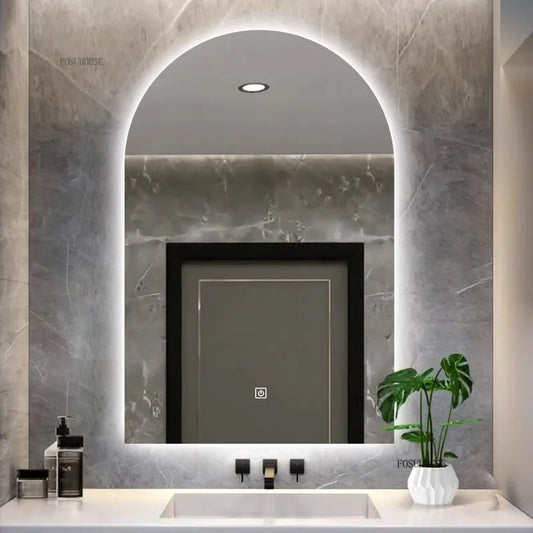 Arched Smart Bath Mirror Toilet Led Lighted Dressing Mirrors Bathroom Fixture Wall Mounted Home Semicircular Hair Salon Mirror