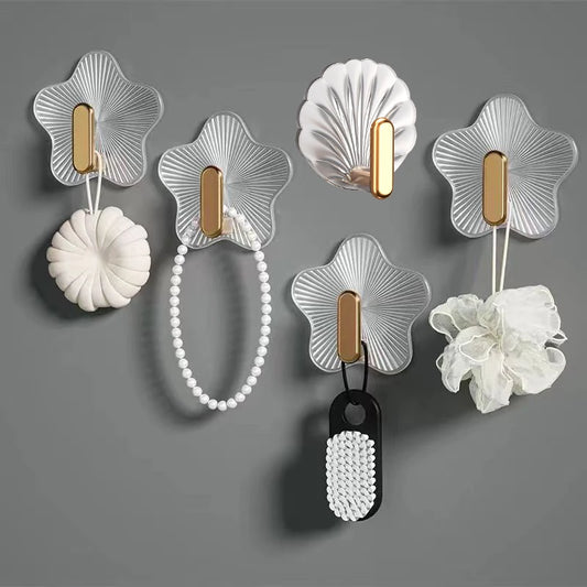 1/3/5pcs gold-plated star and shell punch-free hook, waterproof kitchen bathroom high load bearing, multi-functional door sticky