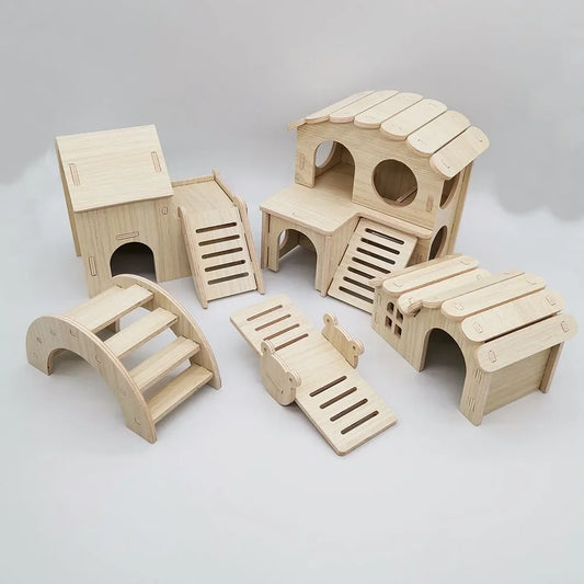 Cage Hamster Wooden House Hamster Toy Accessories for Guinea Pigs Pets Cages for Whose Activity Climb Toy Hamster Accessories