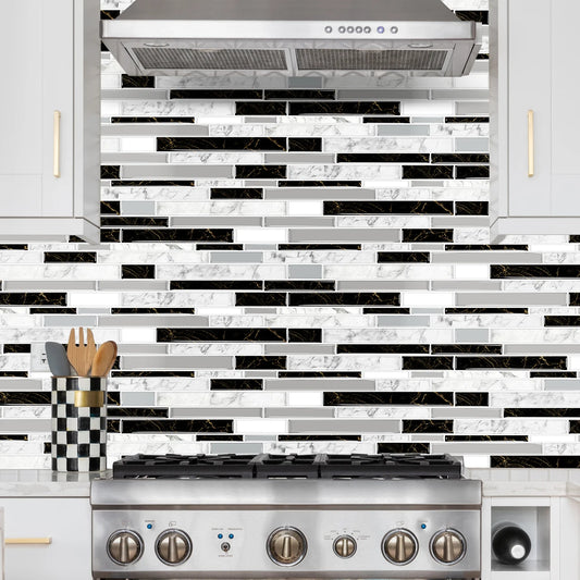 12PCS Classic Marbled Crystal Glossy Kitchen Stickers Waterproof Oil Resistant Self-Adhesive Kitchen & Bath Tile Stickers Backgr