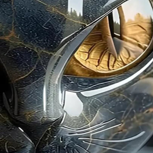 Cat Stone Figurine Sculpture Marble Texture Cat Head Statue with Amber Eye Resin Cat Head Healing Stone Ornament for Home Office