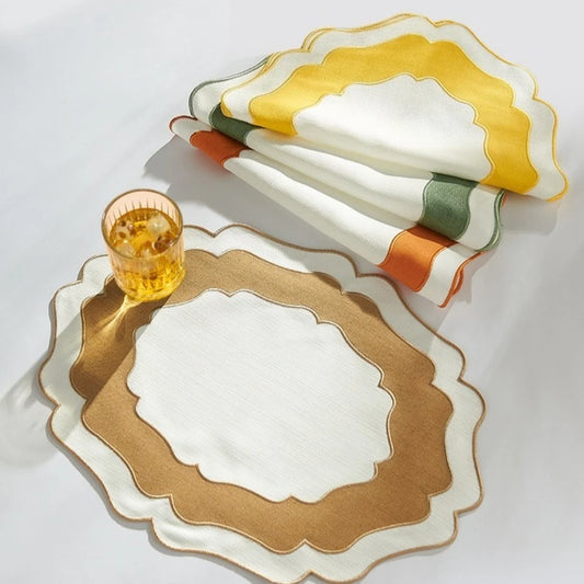 4pcs Restaurant Linen Lace Embroidery Placemats Irregular Dinner Plate Cloth Two-color Fabric Table Set Washable & Reusable