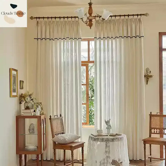 French Vintage Valance Linen Tulle New Cream Style Curtains for Living Dining Room Bedroom Decorate Customize Шторы Лен