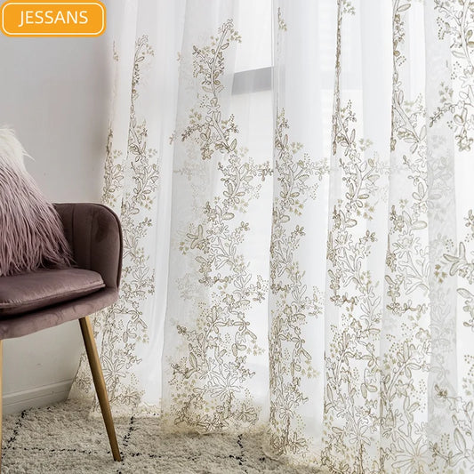 White European Embroider Window Tulle for Bedroom Living Room Balcony High-quality Luxury Drapes Retro Lace Sheer Curtain Voile