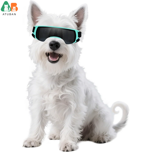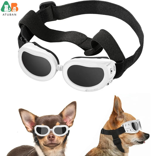 ATUBAN Small Breed Dog Goggles - UV Protection Sunglasses with Adjustable Strap, Windproof, Anti-Fog for Small Dogs, White