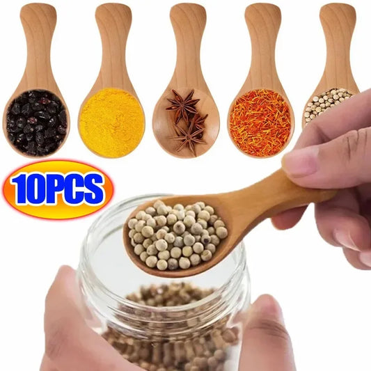 1/10Pc Short Handle Small Wooden Spoons Tea Honey Coffee Kitchen Spice Condiment Salt Sugar Enduring Mini Baby Spoon Accessories