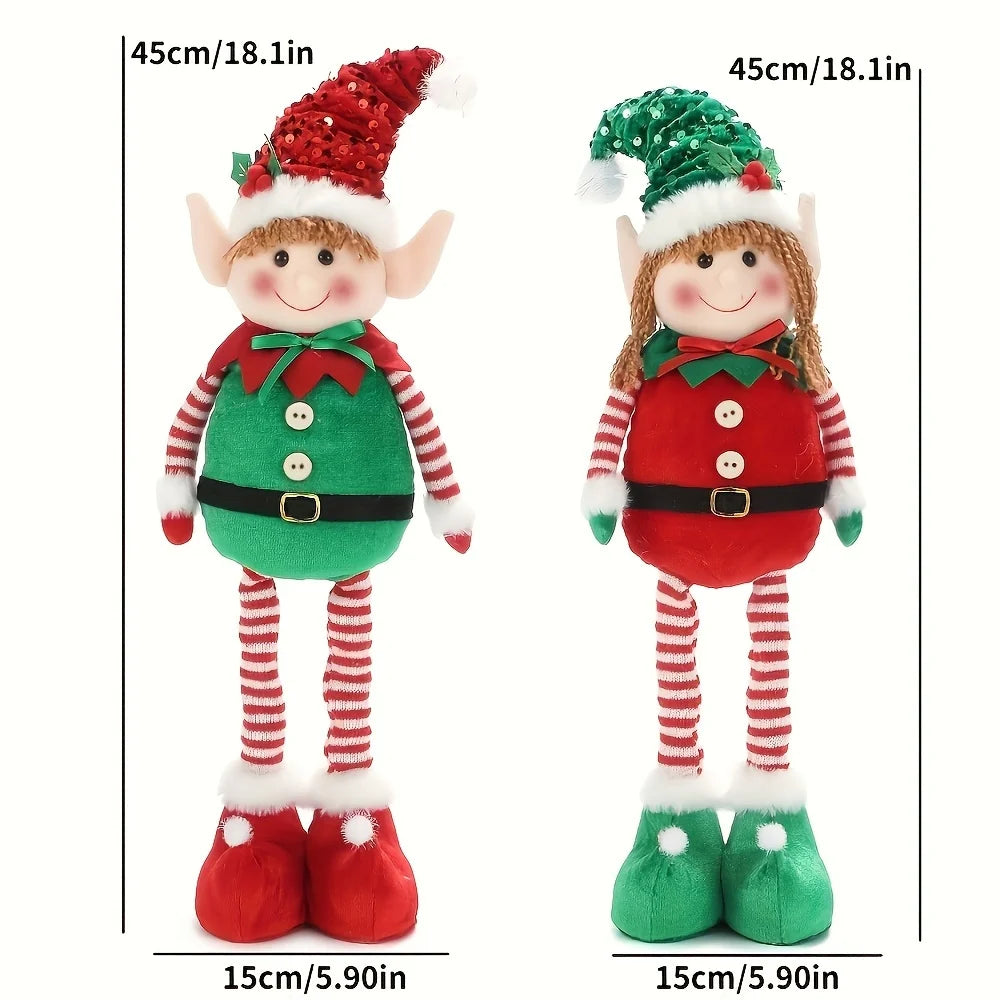 1/2pcs Classic Stretchable Elf Figurine, Festive Polyester Wall Hanging, Unisex Christmas Party Decor, No Laser, No Feather, Hol
