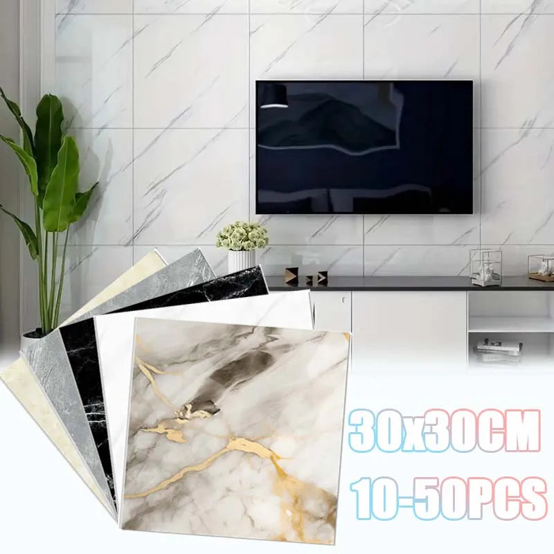 10/30/50PCS Simulated Thick Marble Tile Wall Sticker PVC Waterproof Self-adhesive Living Room Toilet Kitchen Home Floor Stickers