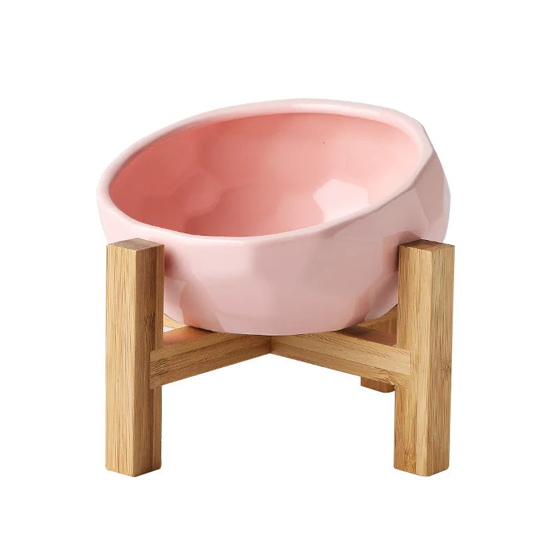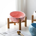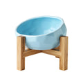 1090ml Cat Ceramic Bowl Small Dogs Elevated Food Water Feeders with Wooden Stand Pet Feeding Drinking Eating Supplies
