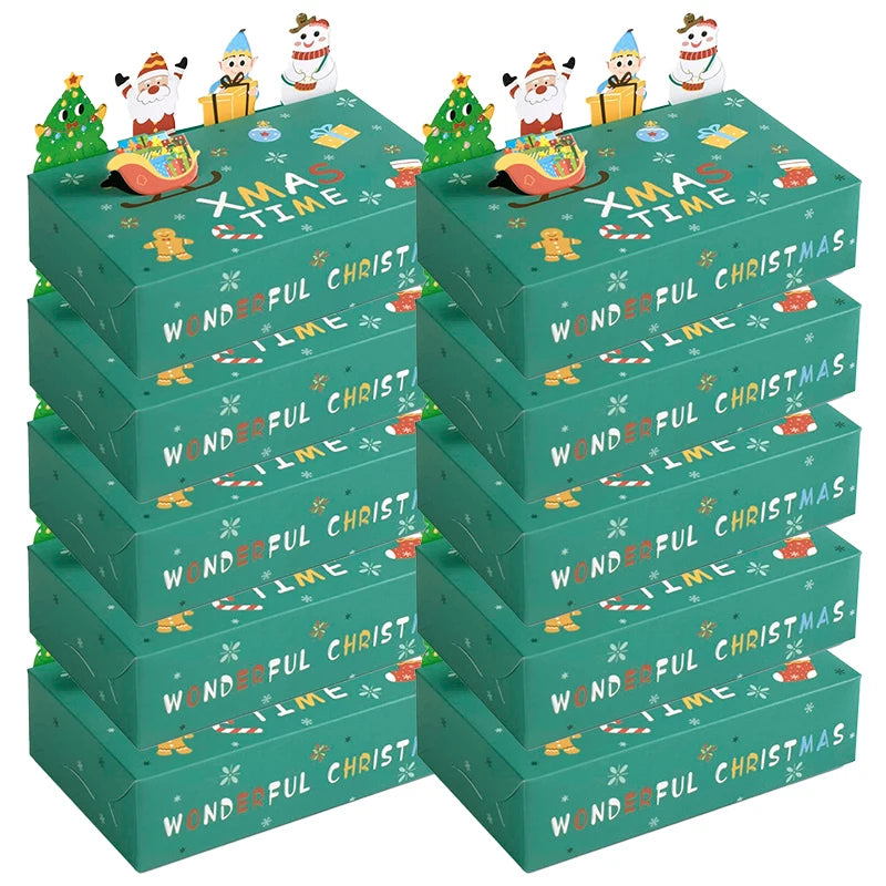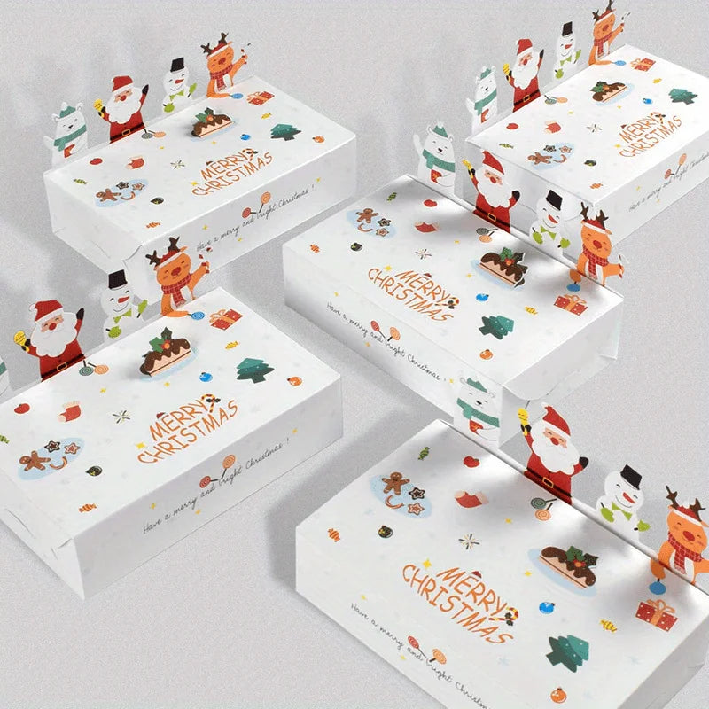 10Pcs Christmas Paper Gift Candy Boxes Cartoon 3D Santa Claus Cookie Box Home Party Storage Box New Year Party Folding Gifts Box