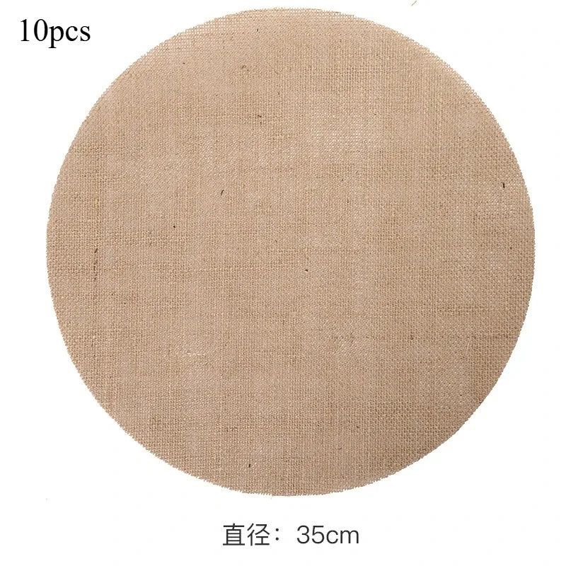 10pcs Round Linen Jute Burlap Table Placemat Table Mat for Dinner Table Tea Cup Plates Mat for Home Wedding Birthday Party Decor