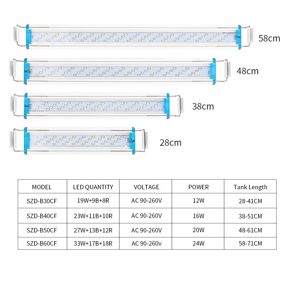 11.02-22.8-inch Ultra-thin LED Aquarium Light Ornamental Fish Tank Water Grass Light Ecological Fish Tank Bracket Light
