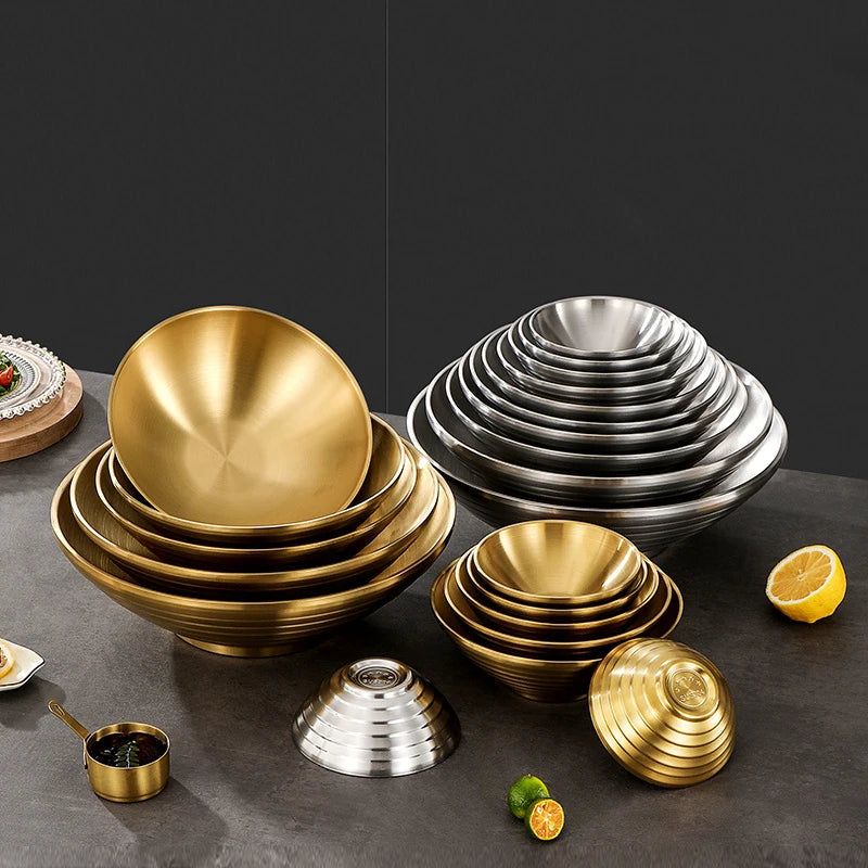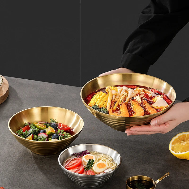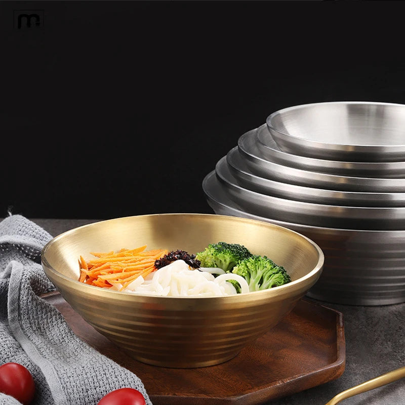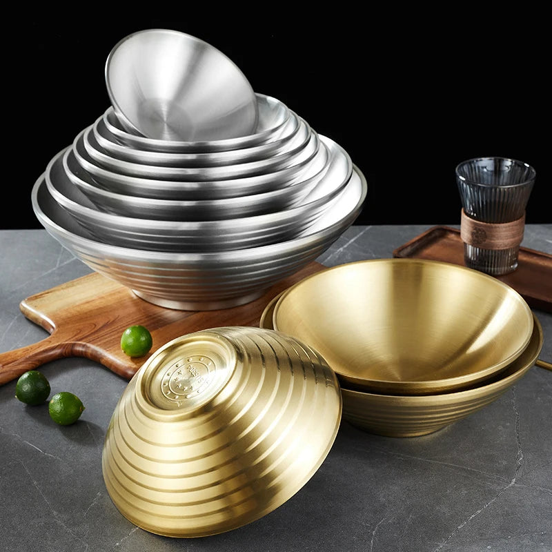 12-26CM Japanese Thread Ramen Large Bowl Stainless Steel Noodle Soup Anti Scalding Bowl Food Tableware Kitchen Utensils