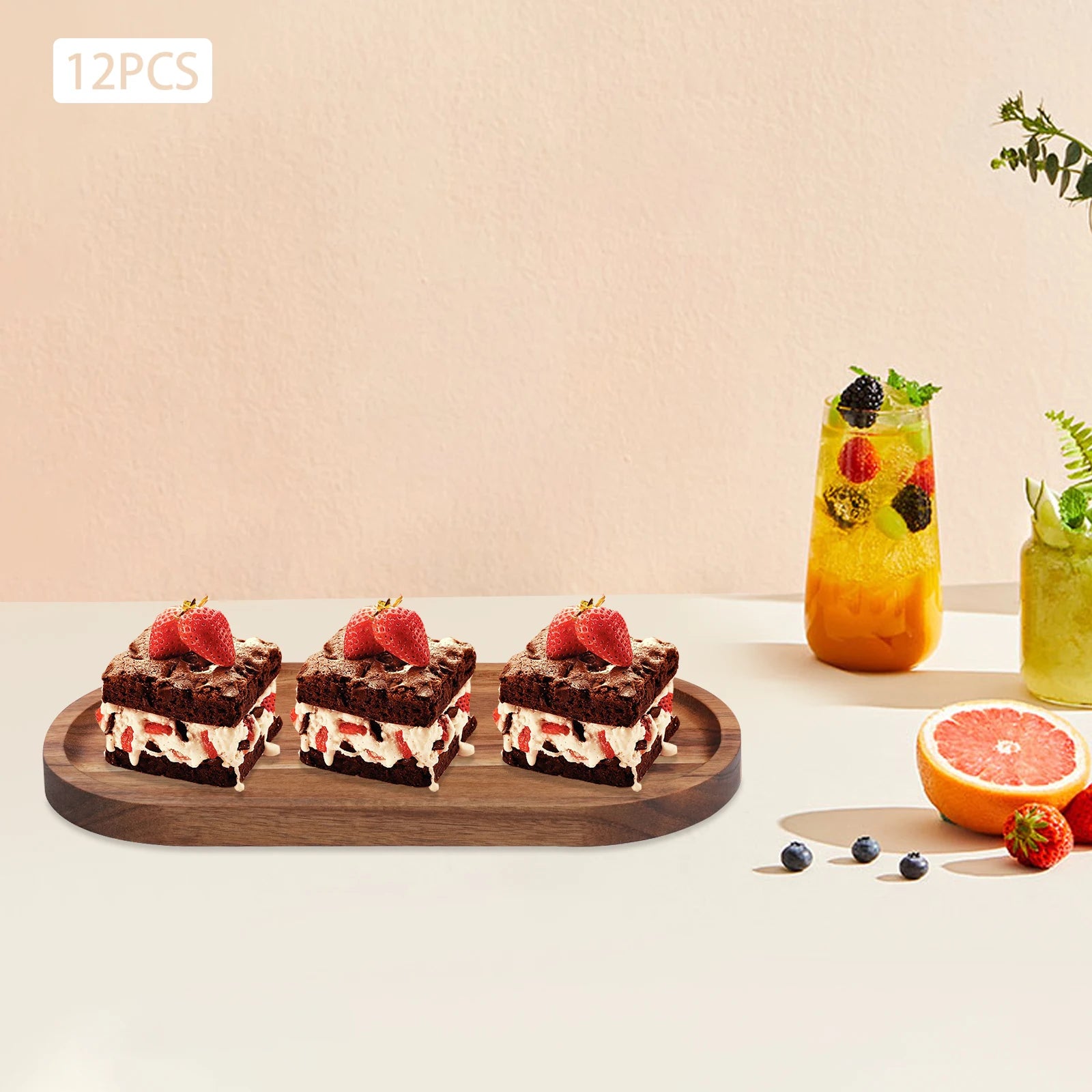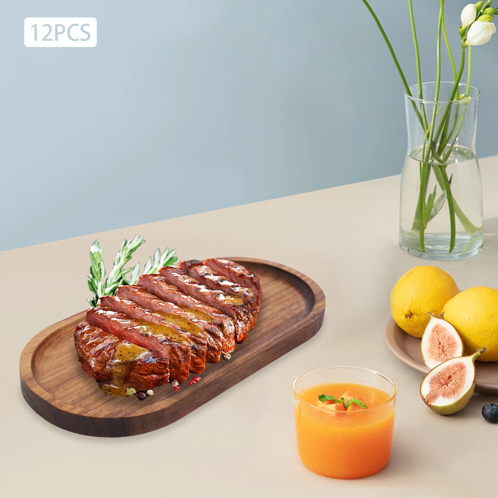 12 Pcs Wooden Trays,Wood Color Oval Wood Rustic Tray 25*12.5*2cm for Homes, Kitchens