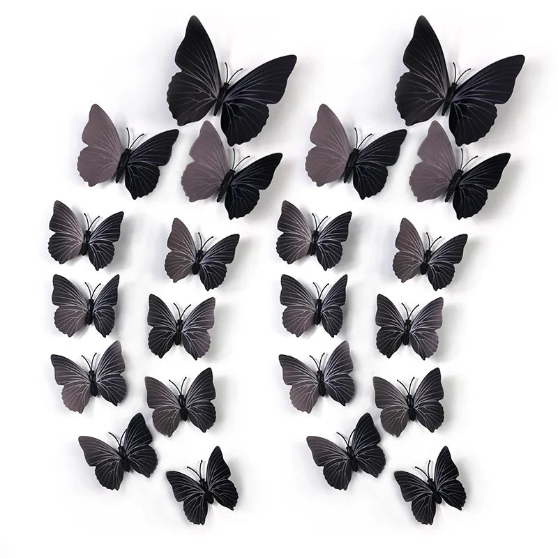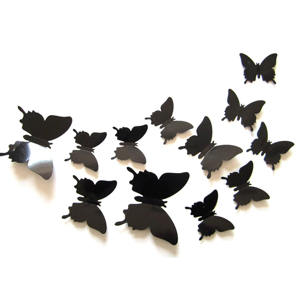 12Pcs/set 3D Black Butterfly Wall Sticker For wedding Decoration living Room Window Stickers Home Decor Butterflies stickers