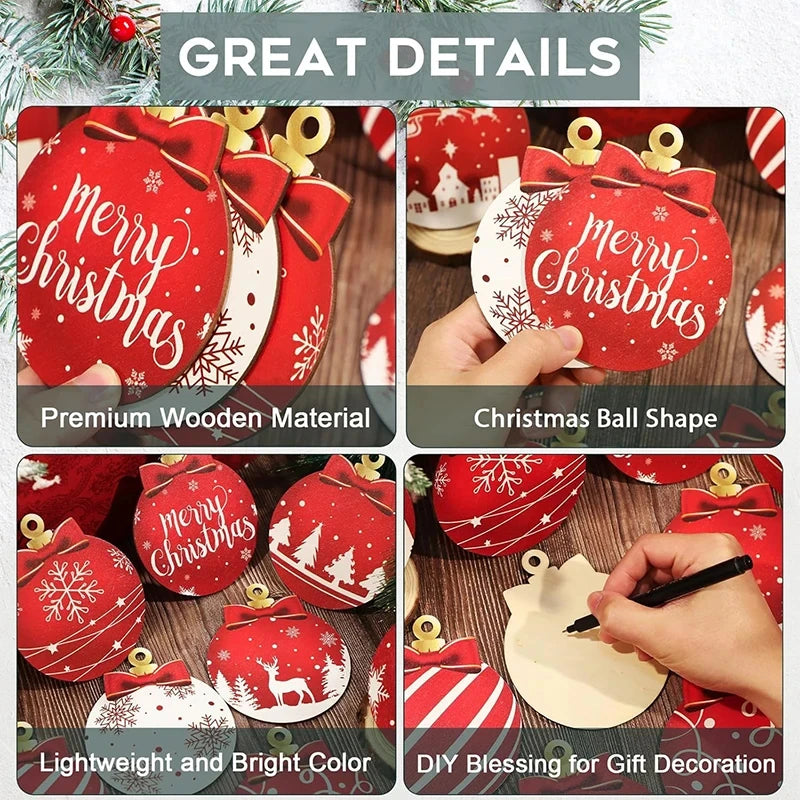12Pcs Wooden Christmas Tree Ball Ornament Hanging Decor Xmas Ball Pendant DIY Christmas Tree Decor for 2026 Home New Year Gifts